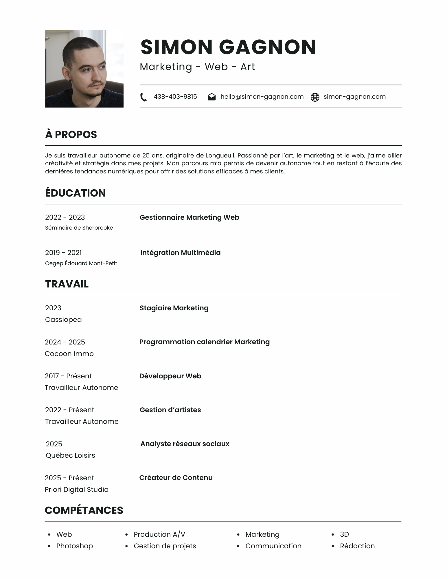 Simon Gagnon, Cv